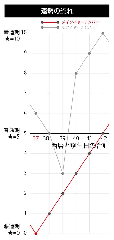 言い方を変えれば、今年さえ下手をせずに一年間を乗り切ってしまえさえすれば、来年以降に運気は上向いていくため、最悪期の運勢の最後の年と肝に命じてください。
