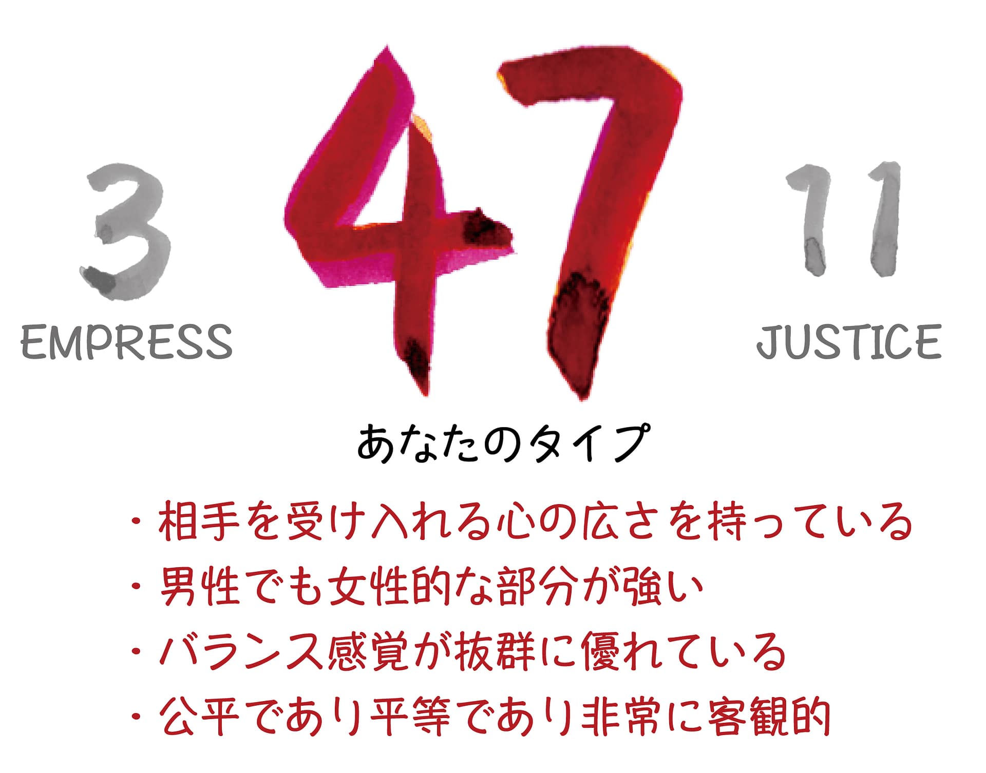 「正義」は、バランス感覚と判断のカードのため、あなたはとにかくバランス感覚が優れており、公平や平等といった価値観を大事にします。