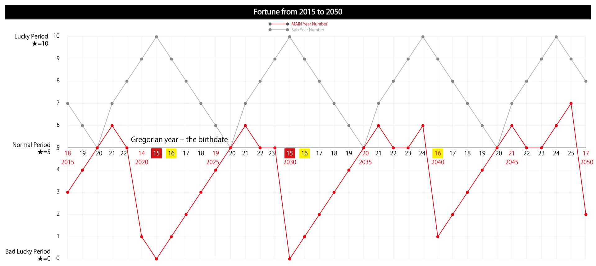 In the overall scheme, the first half of the 9-year cycle involves a period of bad luck (the two years with cards 15 and 16), so life isn’t as simple as recklessly rushing forward. Pursuing success, money, and desires may lead to crossing certain boundaries, causing disruptions in relationships, or even involvement in wrongdoing and crime. Even a life of hard work and dedication can be jeopardized, but the risk can be mitigated by always maintaining composure or having calm individuals around you.