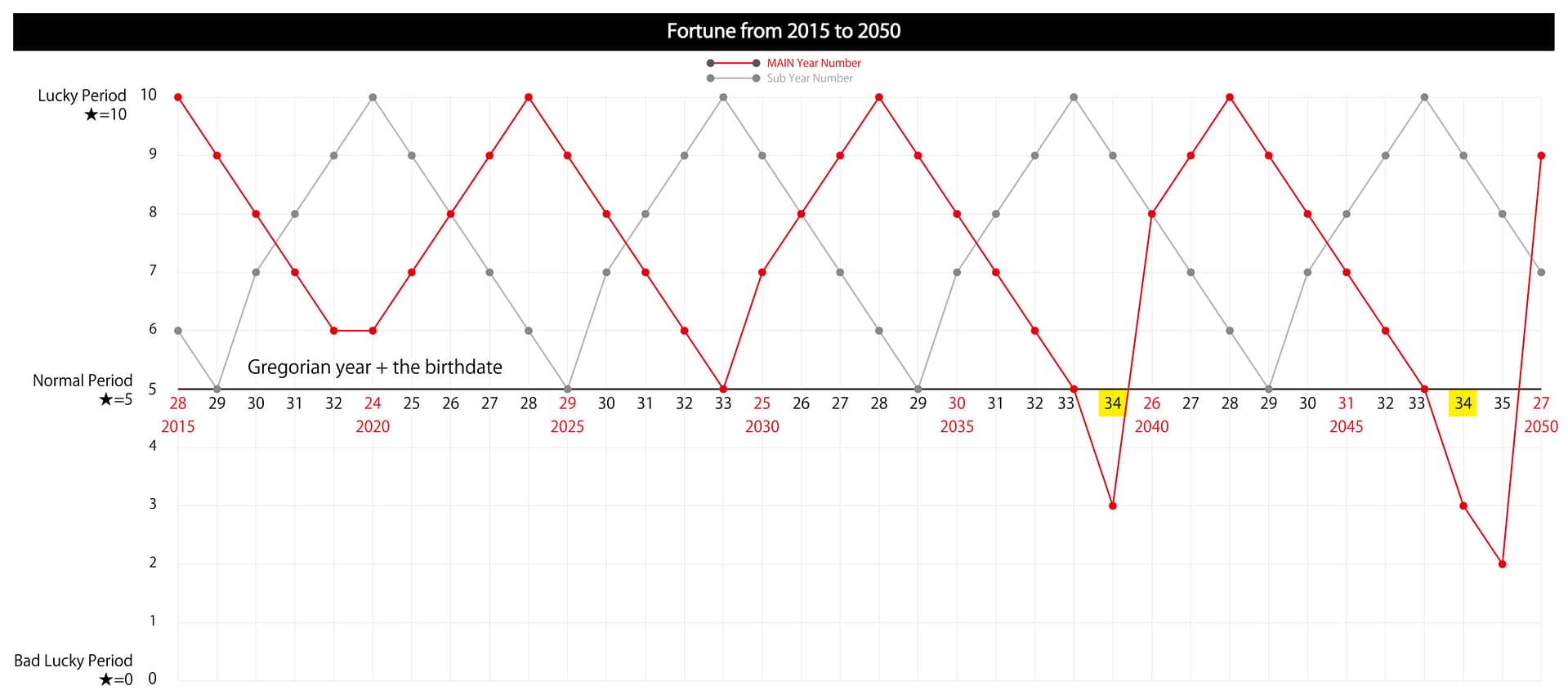 Furthermore, from 2039, the year “12. The Hanged Man,” which is also the entry point for a period of bad luck, will be included. From 2040 onwards, the valleys in the “Cycle of Destiny” will deepen, and a period of bad luck will begin, so please be cautious.