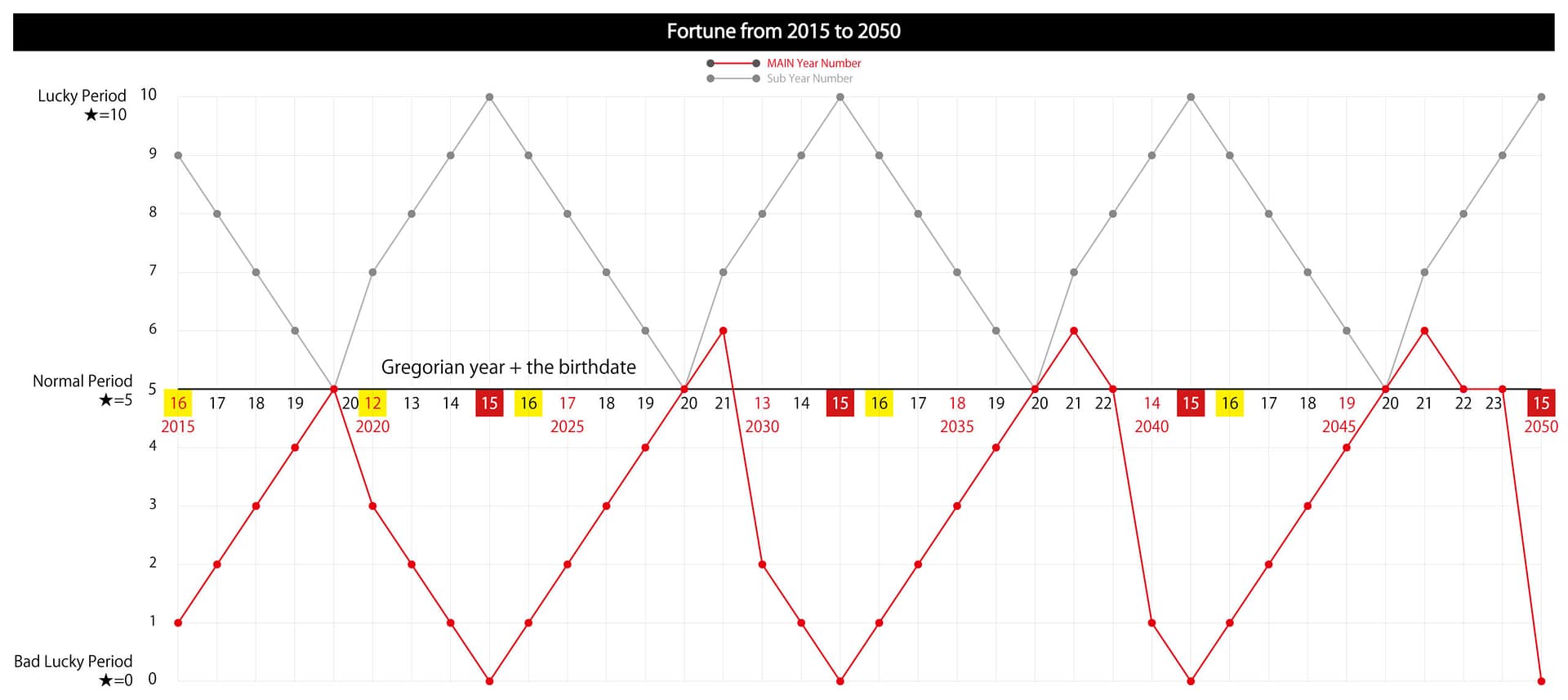In the overall scheme, a period of bad luck (the two years with cards 15 and 16) arrives in a 9-year cycle, so life isn’t as simple as recklessly rushing forward. Pursuing success, money, and desires may lead to crossing certain boundaries, causing disruptions in relationships, or even involvement in wrongdoing and crime. Even a life of hard work and dedication can be jeopardized, but the risk can be mitigated by always maintaining composure or having calm individuals around you.