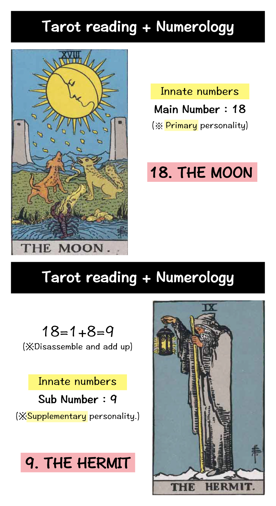 The card as a whole has many components, requiring deep analysis. It suggests an unstable mental state and complex inner workings. You are highly sensitive and accepting of everything, and your life can significantly differ based on your upbringing, environment, and your parents’ personalities. Your circadian rhythm tends to be nocturnal, making you better suited for activities that do not conform to regular daytime work.