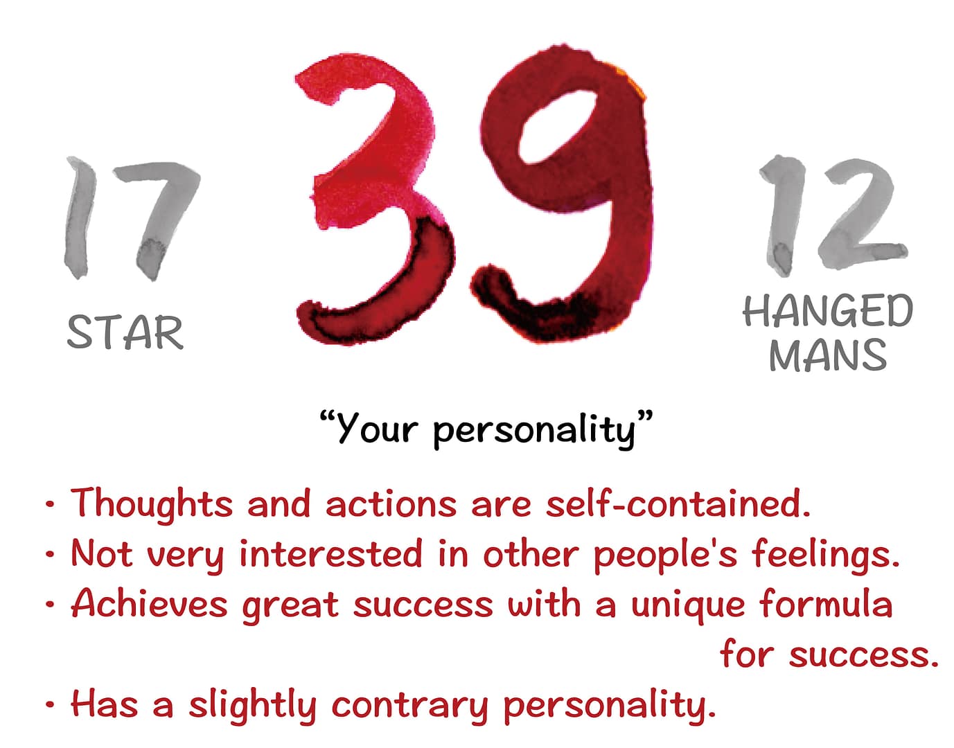 The 17th card, ‘The Star,’ is a card of hope that guides oneself, while the ’12th card, ‘The Hanged Man,’ signifies the card of practice and effort. As a result, you may have a somewhat self-centered side, but by believing in yourself and walking your own path in life, possibilities will unfold.